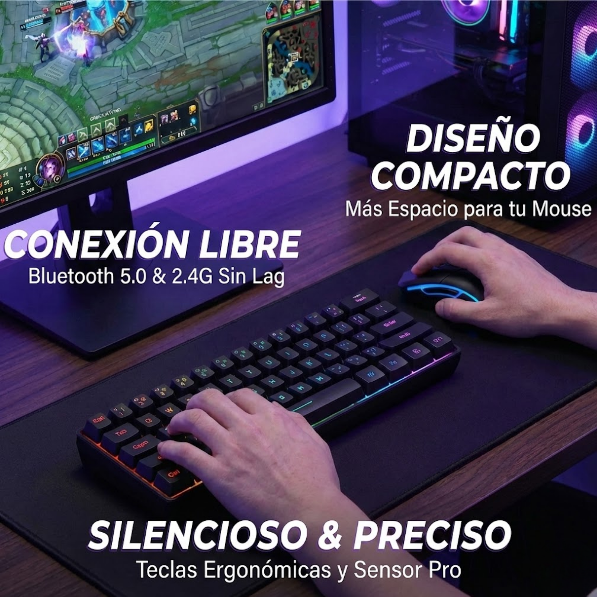 Combo Gamer 60% Wireless: Teclado RGB + Mouse Pro